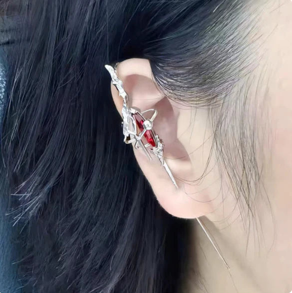 Setze den Ohrring also einfach ins Ohrläppchen ein und lege den oberen Haken über dein Ohr.